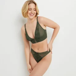 « L’esprit glamour rehaussĂ© d’une touche bohème : CELINE magnifie vos courbes d’une dentelle vĂ©gĂ©tale hyper travaillĂ©e aux lignes graphiques, de touches de satin et de mĂ©tal dorĂ© pour une brillance prĂ©cieuse, d’une couleur dĂ©licieusement sophistiquĂ©e et tendance… »