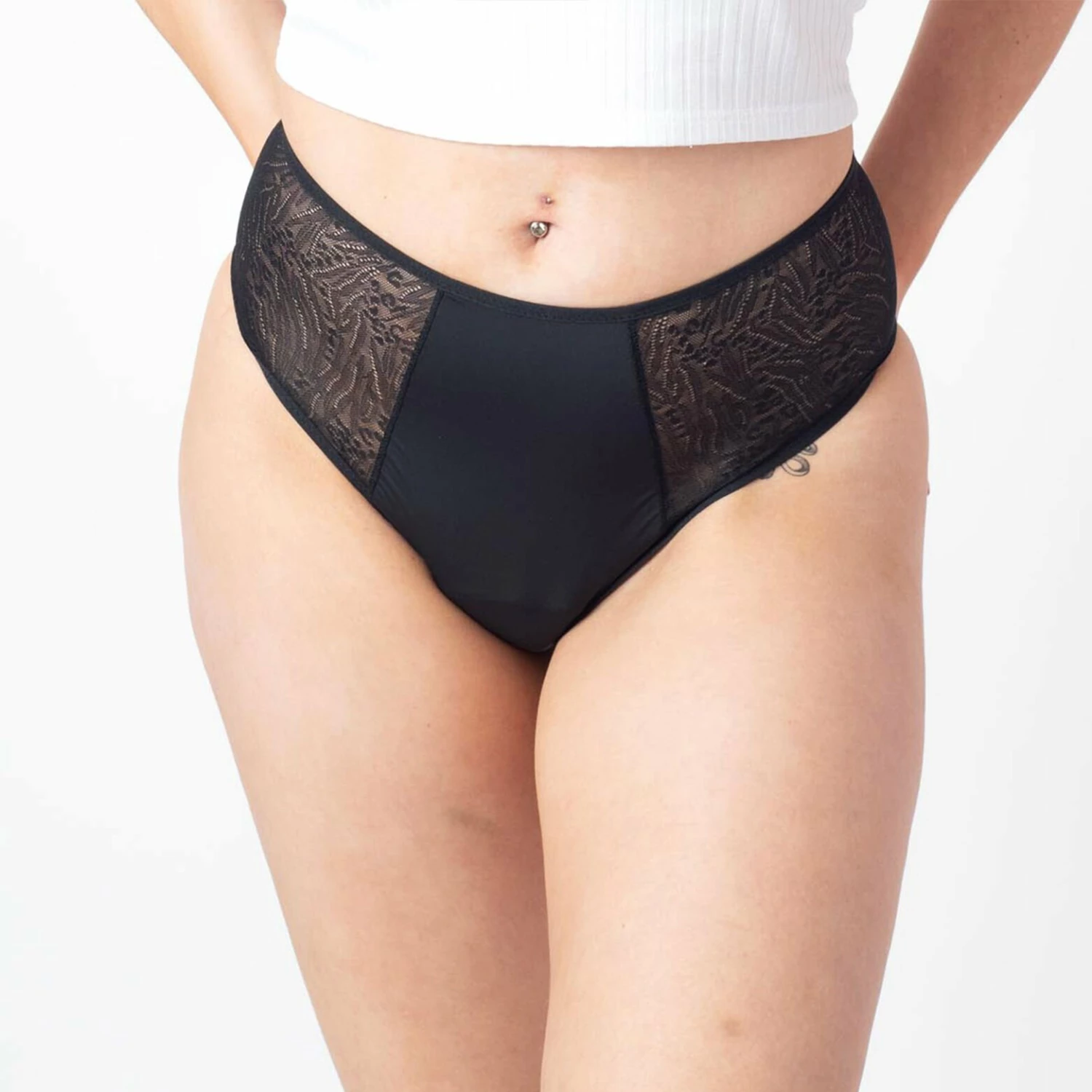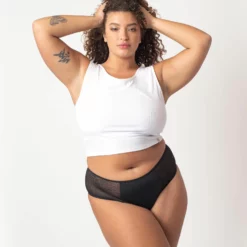 « Même quand on a ses règles, on a envie de porter des culottes tendance et féminines. Ce modèle taille haute DOLENA, rehaussé de tulle ajouré, répondra à toutes vos aspirations à être belle et bien, tout simplement. »