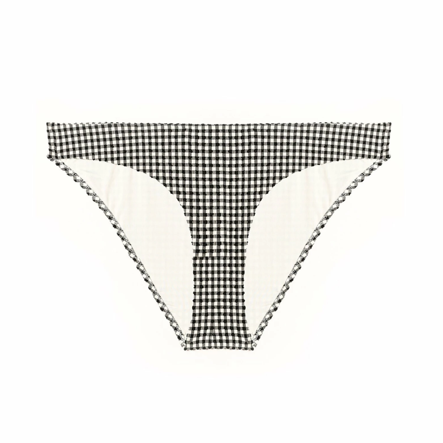 « Le maillot de bain au charme délicieusement vintage, co-conçu avec les filles de la communauté leel cette saison pour sublimer les formes des silhouettes généreuses, en vous apportant confiance et style. Le 2 pièces BONNIE affiche un irrésistible imprimé vichy, des lignes graphiques parfaitement étudiées, et 2 culottes au choix : plus ou moins échancrées. »