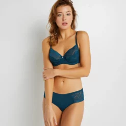 « Une dentelle particulièrement travaillée joue avec les textures, la couleur et les ajourés pour créer un écrin précieux sur votre peau : un véritable petit bijou joliment arboré sous vos vêtements. »