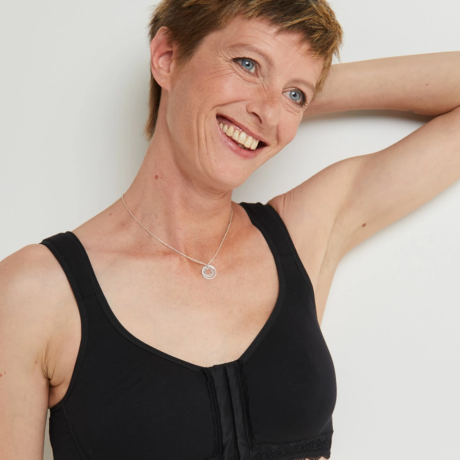 « Les équipes RougeGorge soutiennent la lutte contre le cancer du sein. Cet engagement nous a permis de co-créer avec nos clientes concernées, des soutiens-gorge post-opératoires spécialement étudiés pour les femmes ayant eu une mastectomie totale ou partielle. Doux et couvrants, ils masquent les cicatrices et sont comme une caresse sur la peau. Sans armatures, élastiqués sous la basque, ils offrent un confort absolu. A l’intérieur, la doublure moelleuse en coton est sans pince pour éviter les frottements désagréables. Elle permet aussi de placer discrètement des prothèses mammaires. »