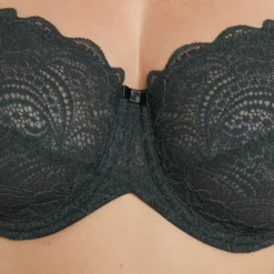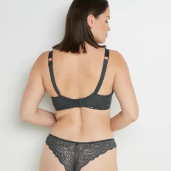 Création signature de notre savoir-faire POINT PAR POINT. Modèle « 3 tranches » conçu pour répondre aux besoins de maintien et de confort des poitrines généreuses. Bonnets très enveloppants, composés de 3 parties (au lieu de 2 habituellement), pour un soutien optimal, associés à des éléments spécifiques : larges bretelles, élastiques d’excellente tonicité, dos cheminée, petit séparateur et armature haute.