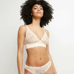 « Rien n’est plus dĂ©sagrĂ©able que de porter un soutien-gorge triangle sans maintien » C’est parce que les femmes nous l’ont dit, que les stylistes RougeGorge ont voulu mettre leur savoir-faire corsetier aux services des petites poitrines ! Bonnets dentelle ajourĂ©e, bord Ă©cailles – Forme triangle – Sans armatures – Noeud couture Ă l’entre-seins – Large basque dentelle sous-poitrine, Ă©lastiquĂ©e pour un maintien et un confort parfaits – Bretelles soulignĂ©es d’une finition dĂ©corative très fĂ©minine, Ă©lastiquĂ©es et ajustables – Bouclerie ton sur ton – Dos tout en dentelle – Fermeture dos par agrafes 3 crochets 3 rangs.