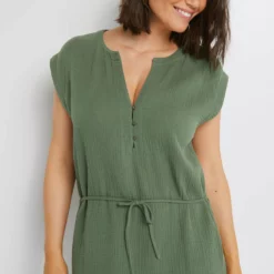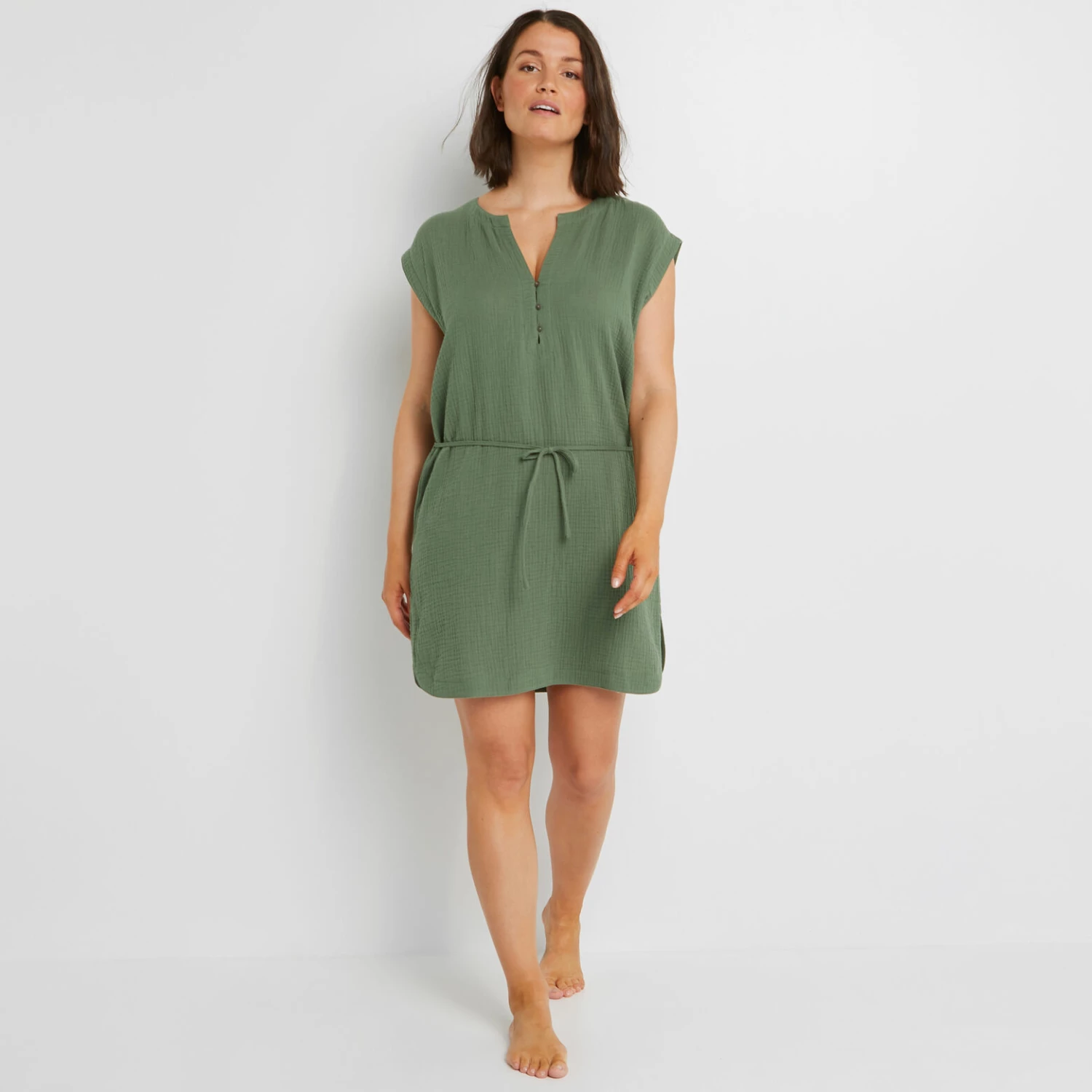 « Toute la fraĂ®cheur et la lĂ©gèretĂ© de l’étĂ© en une tunique conçue en gaze de coton, esprit liquette. » – Coloris uni – Gaze de coton lĂ©gère et fluide, lĂ©gèrement reliefĂ©e, très agrĂ©able sur la peau – Col rond fendu, fermĂ© par 3 boutons esprit coco sur la poitrine – Manches courtes – Fine lanière ton sur ton Ă nouer Ă la taille – Coupe courte – Base droite, petites fentes arrondies de chaque cĂ´tĂ©.